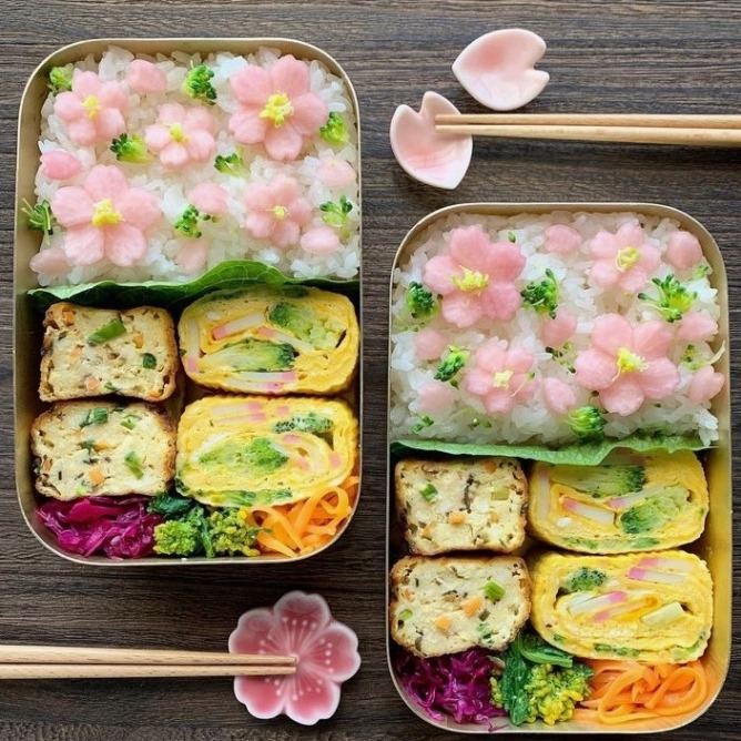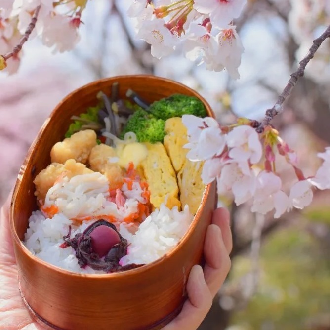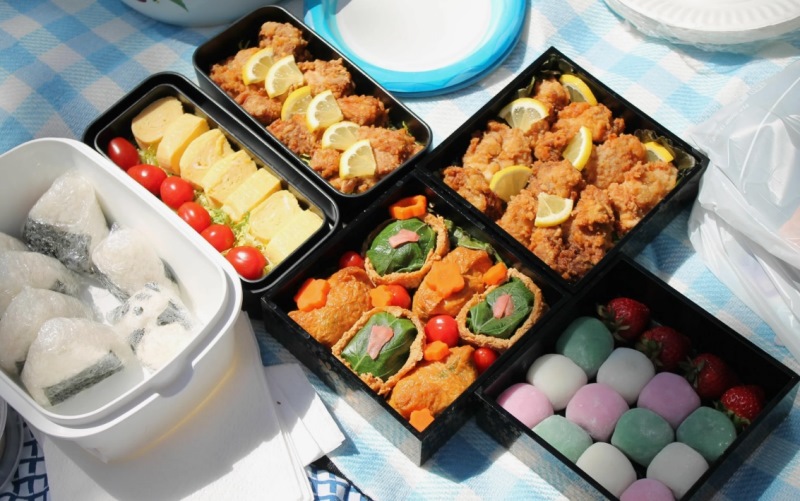 Главный герой меню для отдыха на природе в Японии – это коробочки с едой, которые называются «бенто» (яп. 弁当). Японцы не заказывают еду прямо в парк – согласно общепринятым традициям, угощения для коробочек бенто либо заранее готовятся дома, либо покупаются в гастрономических отделах универмагов.