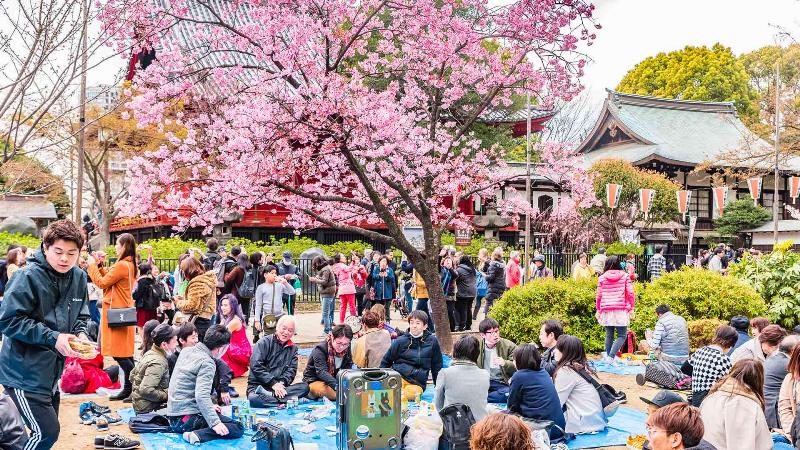 Японский пикник — воплощение совершенно иной философии. Если у корейцев это спонтанный отдых в выходной день с доставкой горячей еды и обязательным комфортом, то для японцев пикник – это событие, привязанное к определенным сезонным природным явлениям, часто требующее тщательной подготовки и соблюдения давних традиций.