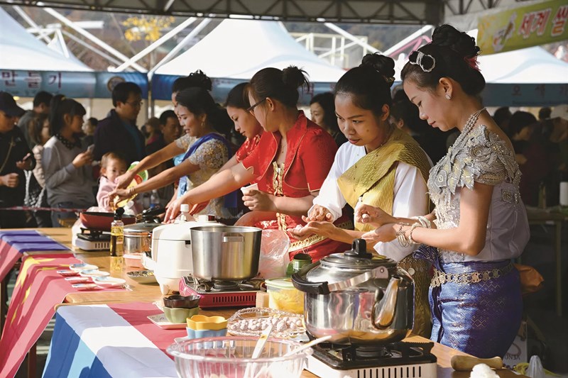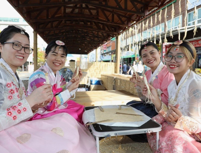 Каждый октябрь гастрономическая столица Кореи, Чонджу, превращается в настоящий храм кулинарного искусства. В Национальном центре нематериального наследия проходит фестиваль, посвященный легендарному блюду из риса Пибимбап, фирменному угощению города Чонджу, которое по праву считается одной из жемчужин корейской кухни. Местные повара и знатоки кулинарии демонстрируют свои уникальные интерпретации блюда пибимбап, раскрывая многообразие региональных вариаций. Для иностранных гурманов организуется увлекательный кулинарный конкурс, где каждый может попробовать себя в создании корейского шедевра. Гвоздь программы — гигантский пибимбап, который готовят сообща все участники. Это кулинарное чудо способно утолить голод тысячи гостей.