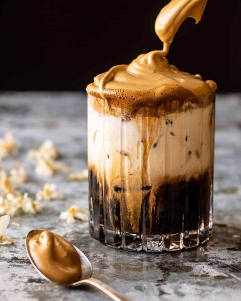 Кофе Дальгона в его самом простом варианте представляет собой плотную густую кремовую пену, взбитую из кофе с сахаром, которую выкладывают в стакан поверх молока. Вьетнамская трехслойная версия кофе Дальгона еще более интересная – нижним слоем служит молоко (причем это не просто молоко, а привычная вьетнамцам сладкая сгущенка), средним слоем – крепкий вьетнамский кофе Робуста, а верхним – кофейно-сахарная кремовая пенка. Напиток, приготовленный таким способом, пользовался огромной популярностью у представительниц прекрасного пола во Вьетнаме еще задолго до того, как Дальгона-кофе стал современным мировым трендом.