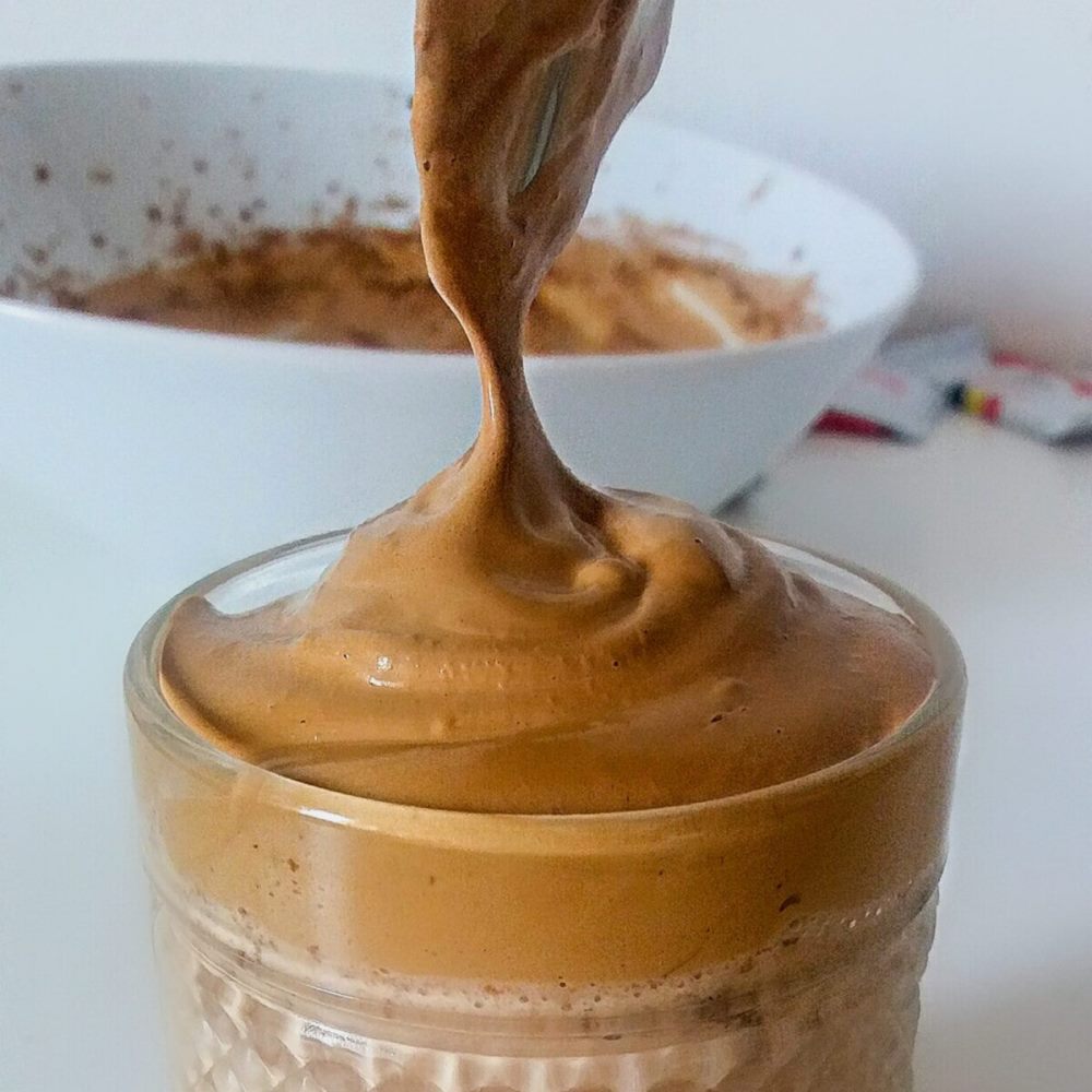 2. Взбейте 50 мл кофе с помощью капучинатора или мини-миксера, медленно добавляя в процессе взбивания тонкой струйкой сахарный песок. Примерно через 2-3 минуты вы увидите, что кофе покроется гладкой ровной пенкой с плотной кремовой консистенцией. С первого раза может не получиться – тут нужно чувствовать процесс, подобрав оптимальную скорость взбивания с помощью вашего электроприбора. Кофейная пена будет иметь приятный карамельно-бежевый цвет.