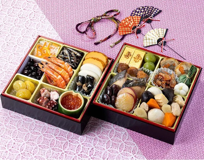 Новогодние угощения в Стране Восходящего Солнца - это набор тщательно подобранных блюд, подаваемых во время трапезы в роскошных многоярусных лакированных шкатулках. Каждое блюдо должно символизировать определенное пожелание – долголетие, счастье, здоровье, изобилие, благополучие, удачу и другие. Эта красивая старинная традиция берет свое начало в период Эдо (1603-1868 гг.) и отражает связь японцев со своими предками и историей своей страны.