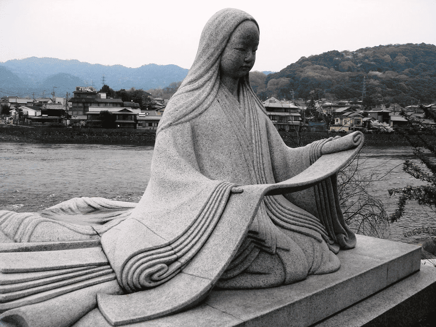 Памятник Мурасаки Сикибу в городе Удзи, где происходят события романа «Повесть о Гэндзи»
