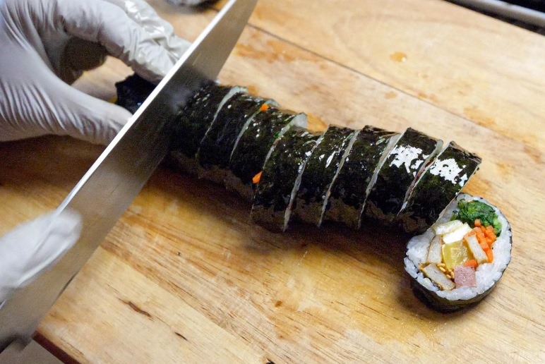Этим ароматным маслом корейцы смазывают водоросли нори, служащие оберткой для кимбапа. Также они протирают кунжутным маслом нож, которым нарезают кимбап-рулетик на ломтики. Японцы для приготовления футомаки никогда не используют кунжутное масло.