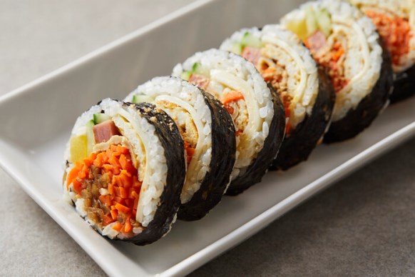 Хотя суши широко известны в мире как исконно японское блюдо, их история гораздо более древняя – возникшее в Юго-Восточной Азии, это угощение попало в Японию из Китая, и уже в Стране Восходящего Солнца обрело свой современный вид. В Корее узнали о суши во времена колонизации Корейского полуострова Японией, период которой длился 35 лет – с 1910 по 1945 гг. Интересно, что корейцы лакомились комочками вареного риса, завернутыми в водоросли, задолго до знакомства с японскими суши – еще во времена эпохи Чосон (1392 – 1897 гг.), и упоминание водорослей гим (общее корейское название для съедобных морских водорослей) встречается в корейских книгах XV века. А суши в виде свернутых рулетиков (известные нам как роллы) были придуманы в Японии в эпоху Эдо (1603 – 1868) в середине XVIII века – после того, как в японской кухне появились пластинки нори, которые японцы научились делать из измельченных в пасту морских водорослей таким же способом, как и рисовую бумагу.
