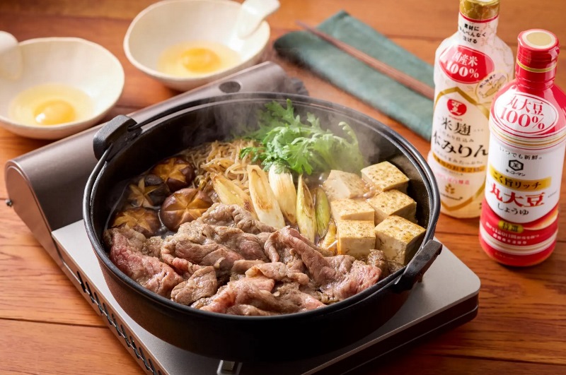 Гамму вкусов этого культового японского блюда формирует восхитительный бульон Сукияки, основными приправами для которого служат японский соевый соус, мирин, сахар и сакэ. Когда мясо, овощи, тофу и лапша варятся в этом бульоне, он пропитывает их и насыщает богатым вкусом, а баланс соленого и сладкого, дополненный ярким умами, делает каждый ингредиент этого блюда еще более аппетитным.
