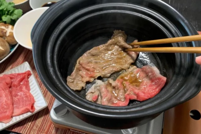 При выборе продуктов для Сукияки японцы руководствуются традиционными рекомендациями, которые считаются нерушимыми правилами приготовления этого знаменитого блюда. Во-первых, ломтики говядины должны быть нарезаны очень тонко, буквально чтобы просвечивали на свету. В Японии для Сукияки используют говядину вагю (мраморную говядину, мясо коров определенных японских пород). В качестве адекватной замены повара рекомендуют использовать говяжью лопатку или стейк рибай, главное, чтобы ломтики были очень тонкими.