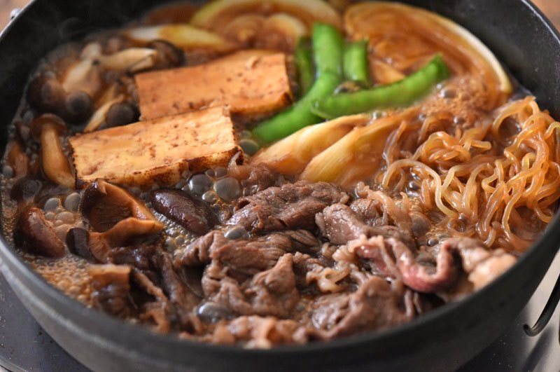 Сукияки — это японская вариация древнейшего китайского блюда Хого (оно же «хот-пот» или «горячий горшок»). Оно представляет собой кипящий бульон с приправами и специями, в котором участники трапезы сами для себя варят кусочки мяса, овощей, грибов, тофу, лапшу, пельмени и другие ингредиенты, затем сразу же перекладывают себе на тарелку и угощаются. В центре стола располагается переносная электрическая или газовая мини-плитка, которая и поддерживает кипение бульона. Едоки располагаются вокруг нее. Кастрюля с кипящим содержимым служит центром совместной трапезы, источая аппетитнейшие ароматы. Сукияки в Японии — символ домашнего уюта и тепла, единения семьи и друзей, дома как надежного пристанища, где всегда накормят и позаботятся о вас.