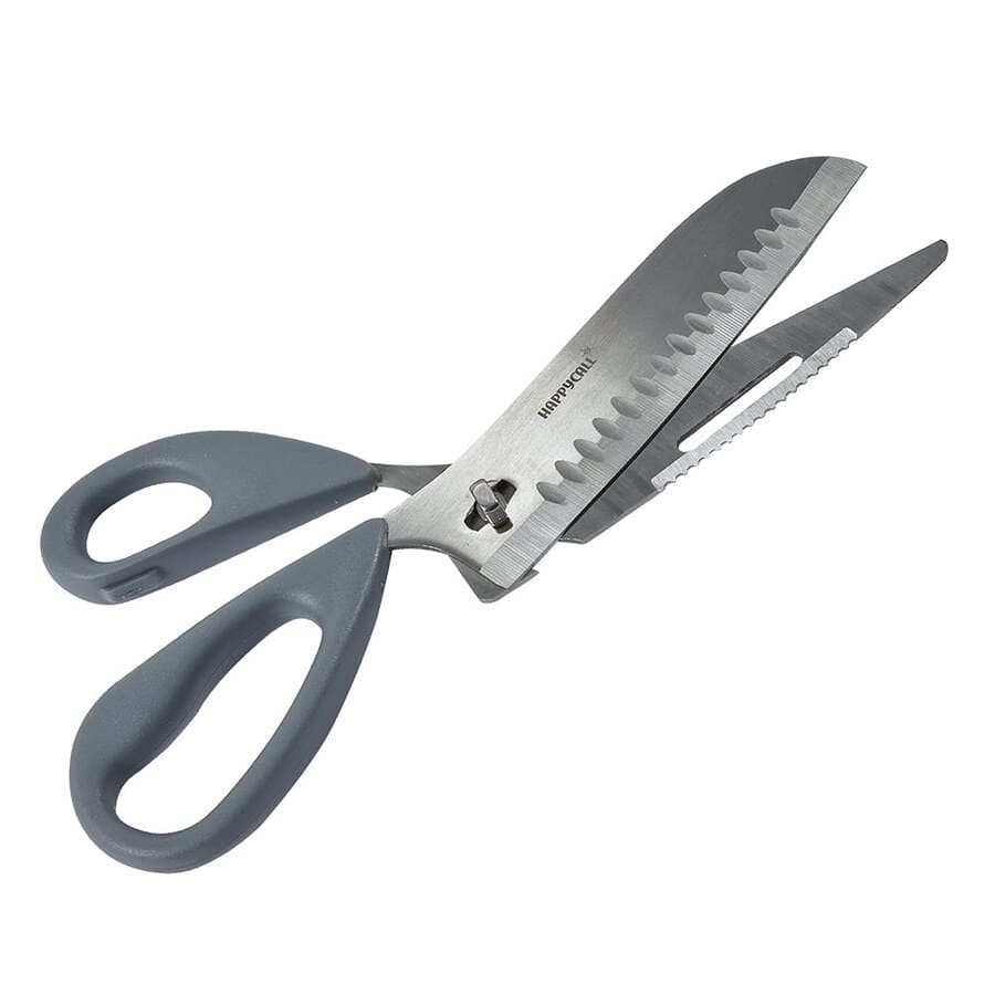 Эти ножницы серии NewGrip от корейского бренда Happycall представляют собой уникальную комбинацию из острых лезвий из нержавеющей стали и удобных ручек из пластика и силикона. Они имеют инновационную конструкцию, которая позволяет вам открутить болт в середине и использовать лезвия в качестве ножей. Это современное и эргономичное решение для ситуаций, когда на кухне не хватает места для большого количества аксессуаров.
